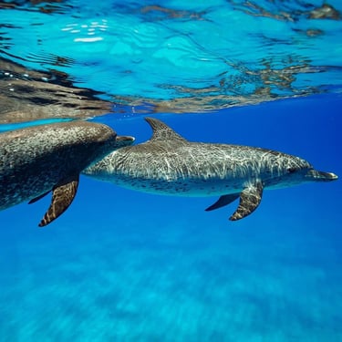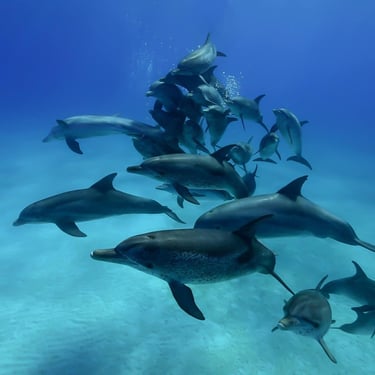 Holistic Dolphin Retreats in Bimini, Bahamas and Mozambique in Africa with spotted and bottlenose dolphins. These dolphins are well known to us and come and play often.