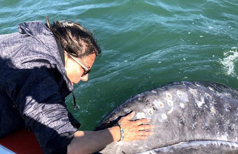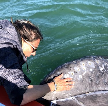 There's only in ONE place in the whole world--Baja, Mexico, where whales approach humans and WANT to be touched, petted, kissed and hugged AND they bring their babies to us too.